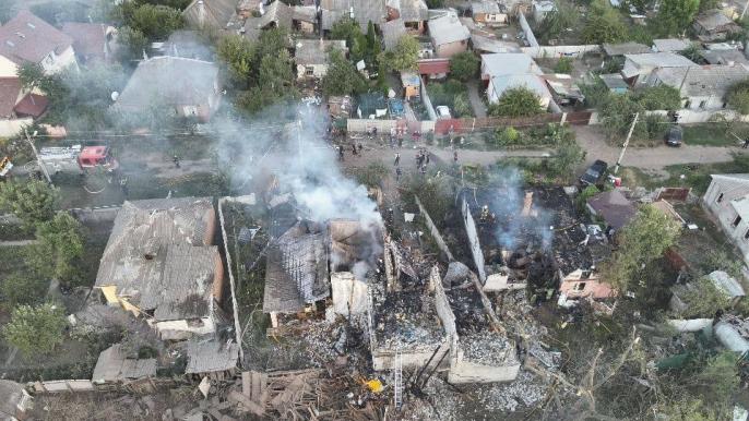 «Внаслідок прильоту по Слобідському району міста горів приватний будинок. Екстрені служби працюють на місці удару», - мер міста Ігор Терехов.