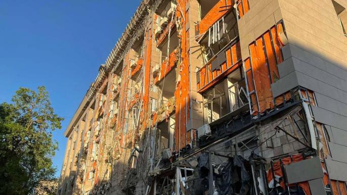 Прилет был в здание которое расположено   на углу проспекта Науки и Бакулина. Предварительно ракетой С300