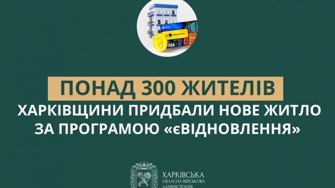 У Харківській області за державною програмою "єВідновлення" купили 317 осель: 246 квартир і 71 будинок.