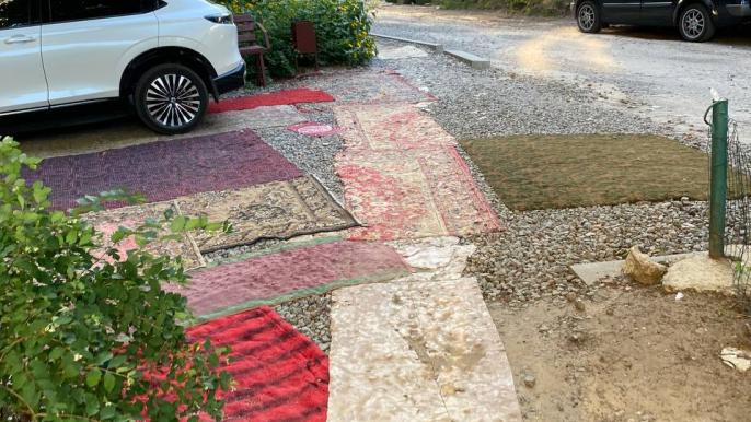 Подписчики пишут, на Салтовке, на Героев труда, не дожидаясь ремонта, жители выкладывают коврами, повреждённые участки тротуара
