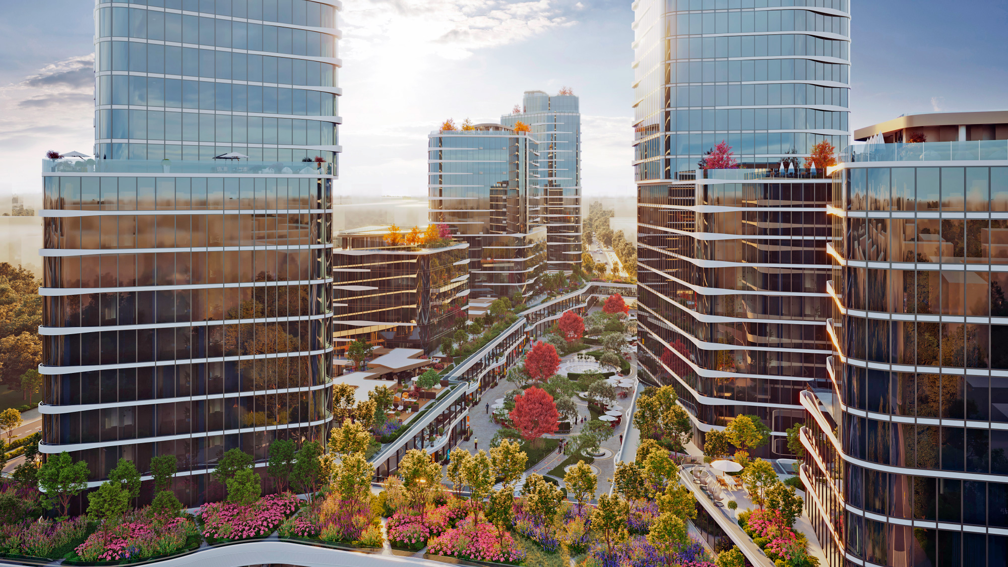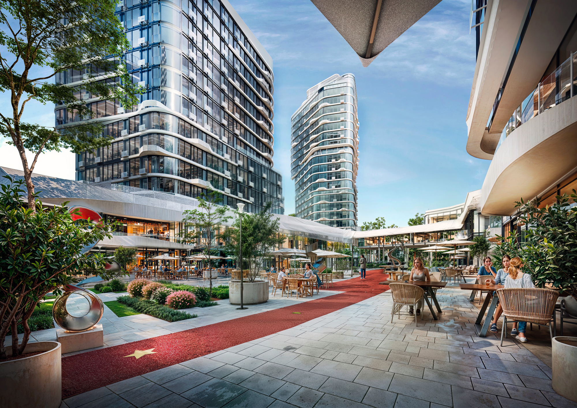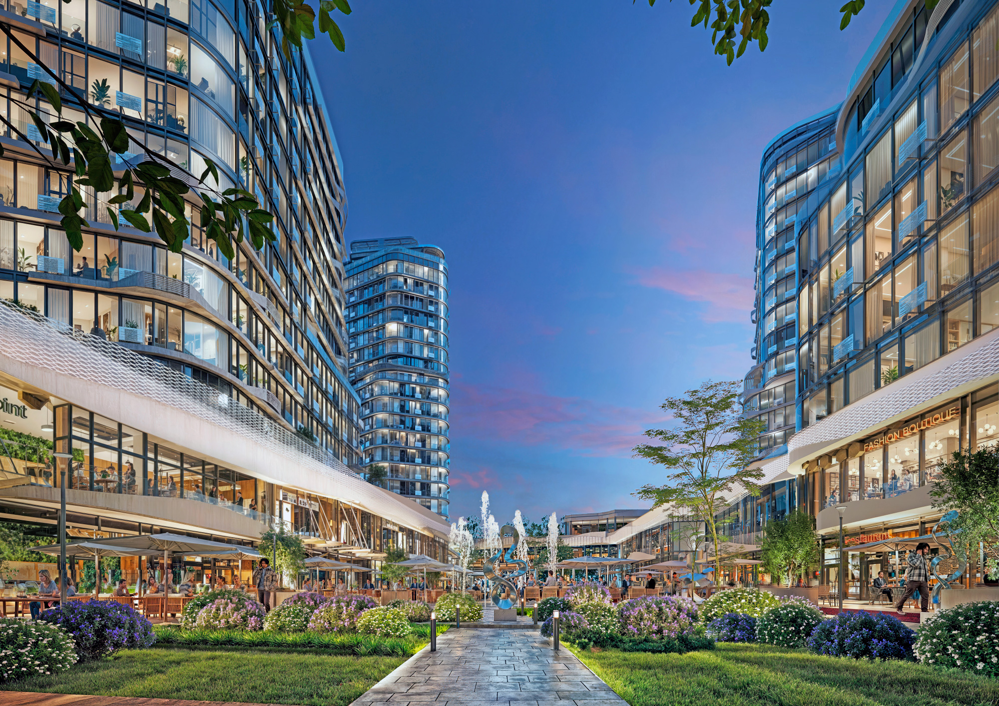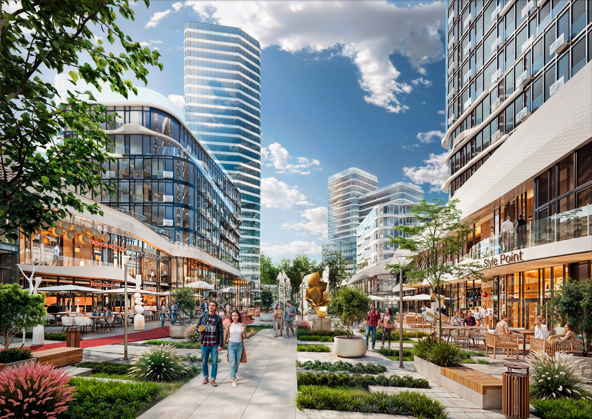 Главной точкой притяжения комплекса является городская пешеходная улица — пассаж с галереями, бутиками, ресторанами и кофейнями. Это новый формат общественного пространства, который становится местом общения, отдыха, прогулок и встреч в самом сердце Киева.