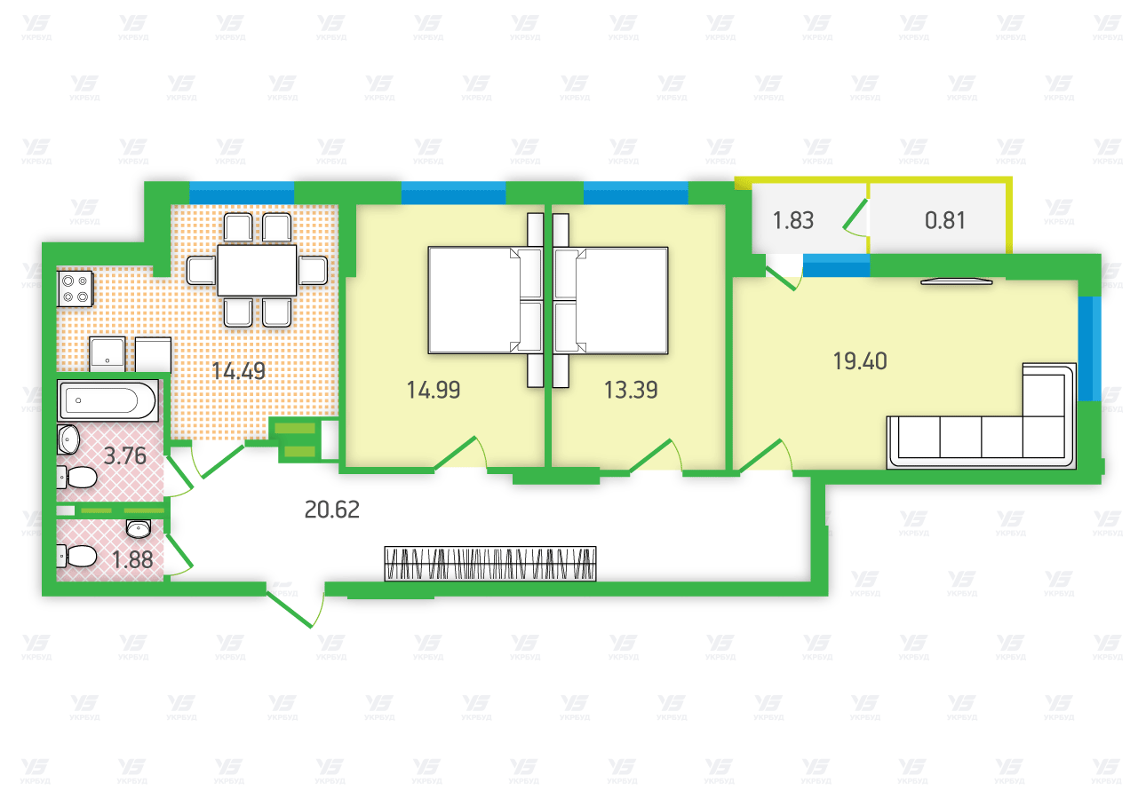 - ЦЕНА, КВ.М 28,500 грн за м² ~ $ 675 $/SQ.M