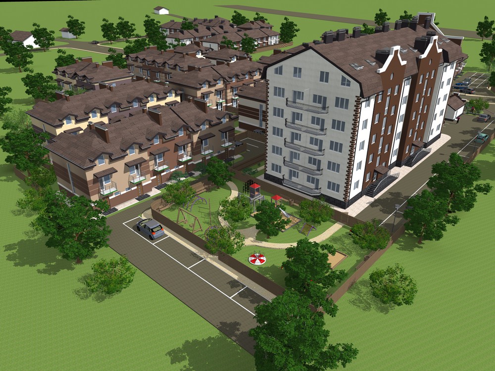 - Типы жилья: 1-, 2-, 3-комнатные квартиры, двухуровневые апартаменты, таунхаусы / коттеджи.