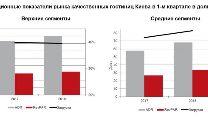«На фоне постепенного восстановления экономики и политической стабильности киевский рынок привлекает больше спроса как внутреннего, так и внешнего, стимулирующего активный рост тарифа и в долларовом выражении, и в национальной валюте. В гривнах в отелях верхних сегментов средний тариф увеличился за 1-й квартал на 6% и превысил 9 тыс. грн., что дало 5%-й рост показателя RevPAR. В отелях средних ценовых сегментов тариф прибавил 15% и достиг 3,9 тыс. грн.; итогом стал рост доходности этих гостиниц на 23%», - отметила руководитель департамента гостиничного бизнеса компании JLL Татьяна Веллер.