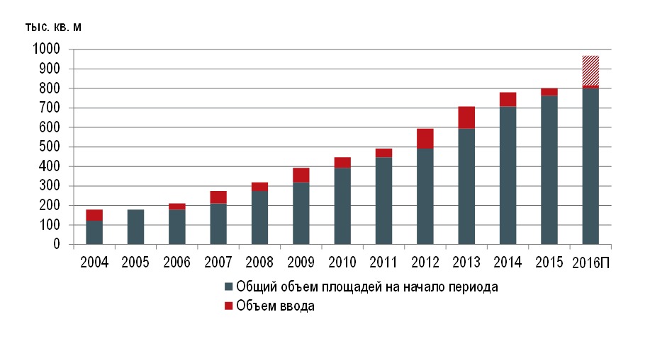 Основной объем новых проектов 2016 года придется на 2-е полугодие. На осень заявлено открытие ТРЦ Lavina Mall (127,5 тыс. кв. м) и ЦУМ (23,5 тыс. кв. м). При условии реализации всех анонсированных проектов объем ввода нового предложения в Киеве станет рекордным и в общей сложности составит 167 тыс. кв. м, что в 4,4 раза превышает показатель 2015 года и почти на 50% предыдущий рекорд 2013 года.