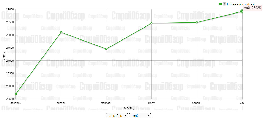 По итогам мая средняя цена за квадратный метр в новостройке Киева составила 28 925 грн., что на 1,5% больше, чем в апреле (28 491 грн.)