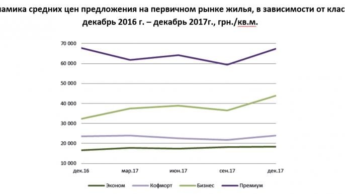 На рынке новостроек Киева в 2017 году цены в большинстве классов показали относительно стабильную восходящую динамику.
