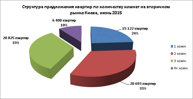 Объем предложения квартир на вторичном рынке продолжает расти большими темпами. В июне 2015 года количество предложенных квартир в Киеве выросло на 11% в сравнении с предыдущим месяцем, достигнув максимума за последние 3 года: 63 тысячи квартир.
