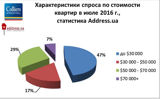 В июле спрос на жилье в самой низкой ценовой категории, до 30 000 дол. США, увеличился в сравнении с июнем – до 47%