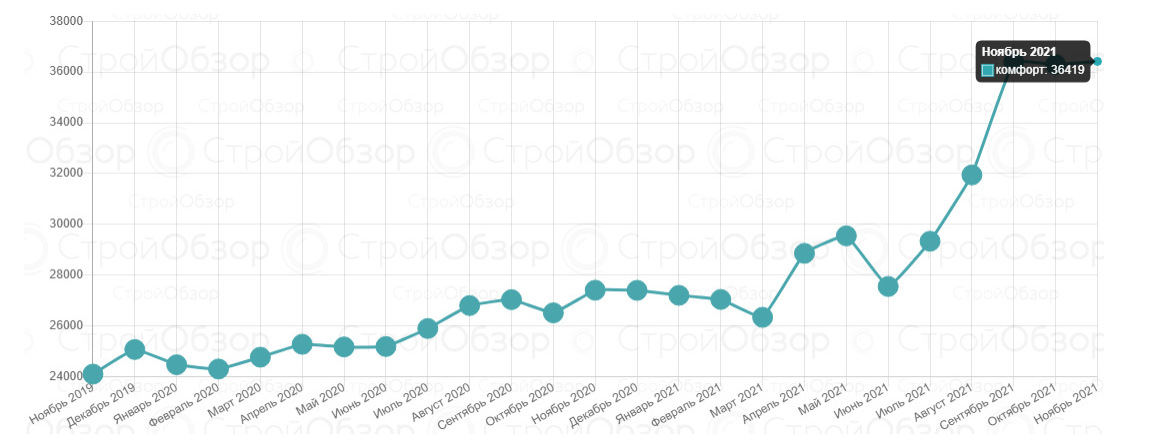 С «комфортом» ситуация другая – цена практически не изменилась. В ноябре стоимость «квадрата» составила достигла 36 400 грн., что на всего лишь на несколько сотен гривен больше показателя прошлого месяца.