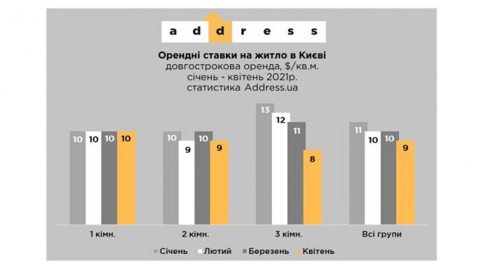 Рынок аренды Киева в апреле 2021 года был стабильным для однокомнатных квартир, а двухкомнатные и трехкомнатные квартиры подешевели.