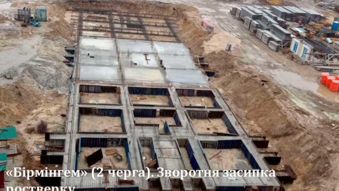 В доме «Бирмингем» продолжается обратная засыпка ростверка второй секции, параллельно ведутся работы по армированию ростверка других секций здания.