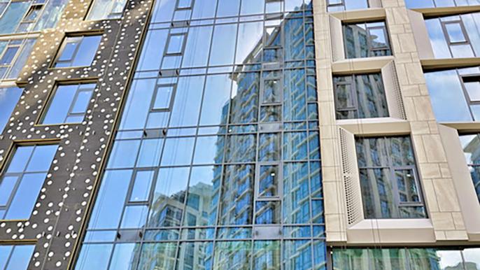 - Виконано 85% монтажу алюмінієвих каркасів та світлопрозорих фасадних елементів.