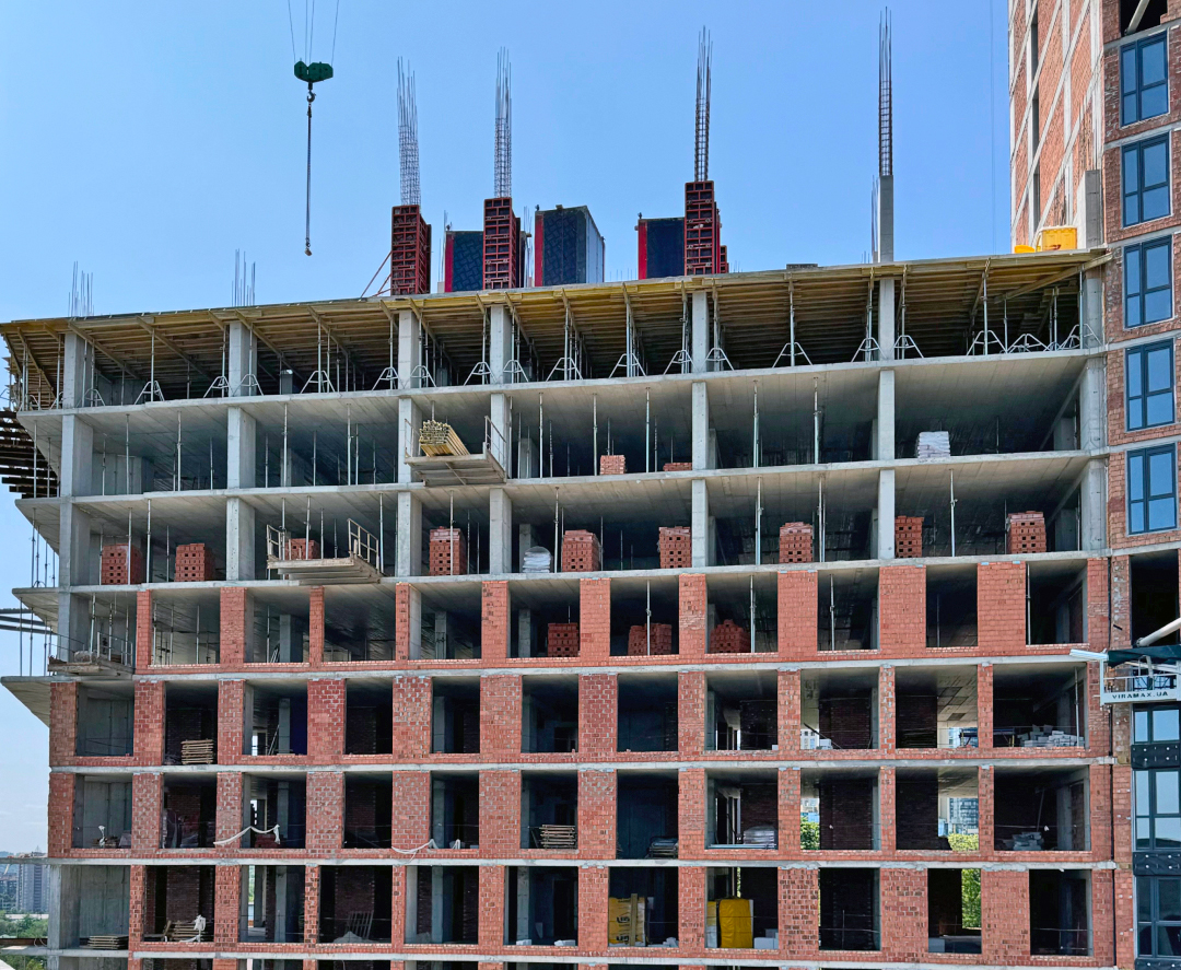 - Кладка стін на 2-му поверсі завершена, наразі роботи тривають на 3-му поверсі.