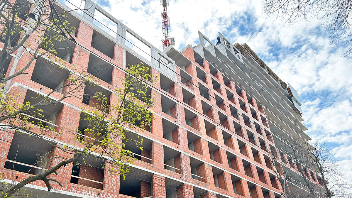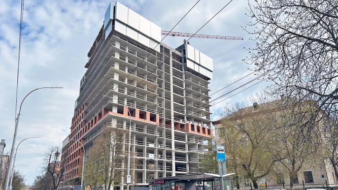 - Завершуються роботи з цегляної кладки на рівні 7-го поверху.