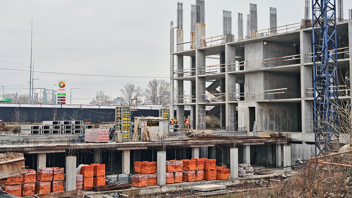 Будівельні роботи активно розгортаються й у четвертому пусковому комплексі. Тут розпочато влаштування вертикальних елементів 1-го поверху, що символізує початок зведення основної конструкції будівлі.