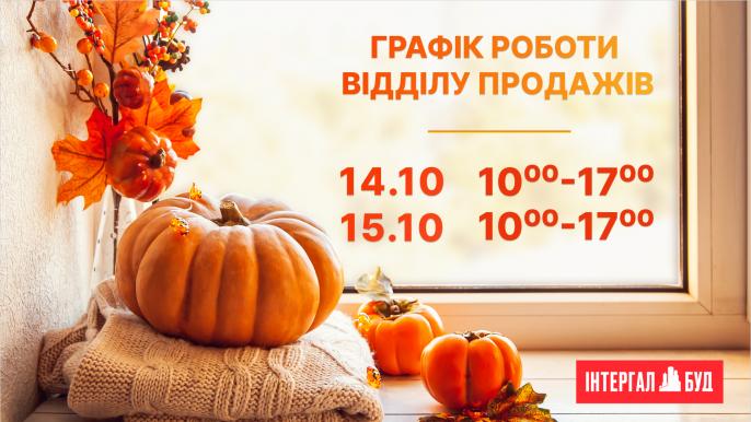 Графік роботи відділів продажів компанії «Інтергал-Буд» у святкові дні жовтня 2021 року