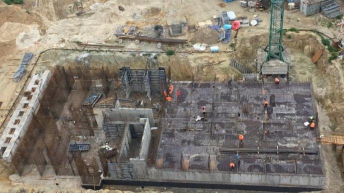 На сегодняшний день на 2 доме, секция А строители обустраивают перекрытия цокольного этажа, а также устанавливают элементы вертикальных конструкций и частичное обустройство перекрытия над 15 этажом 1 дома.