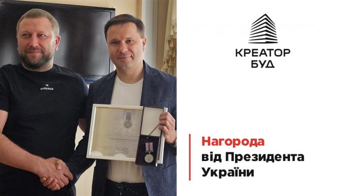 Указом Президента України Володимира Зеленського від 5 серпня №559/2022 нагороджено Голову Ради Директорів компанії «Креатор-Буд» Ігоря Гуду.