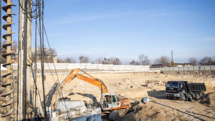 - Секція 5: Розробка котловану – 100%. Влаштування пальового поля – 50%.