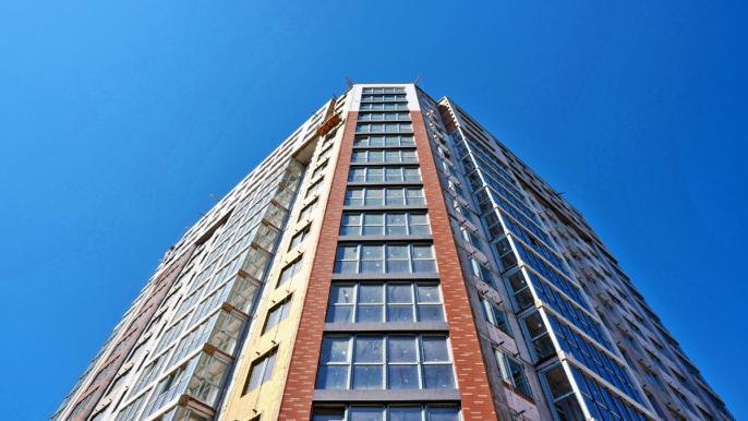- Монолітний каркас 1–15 поверхів, парапет: 100%