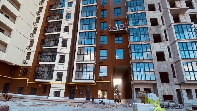 - Перший пусковий комплекс - В усіх трьох секціях завершені роботи з оздоблення МЗК (місць загального користування) і вхідних груп. Також завершені роботи з благоустрою прилеглої території, вздовж вулиці О.Вишні, 1. Продовжуються роботи з благоустрою: внутрішнього двору новобудови - роботи виконані на 75%.Встановлена ГРШ (газорозподільна шафа) для підключення новобудови до зовнішніх мереж газопостачання. Завершені роботи з прокладання мереж 0,4 кВ.