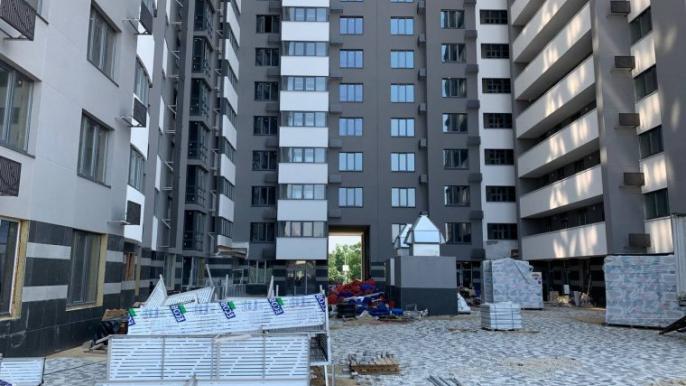 Також на об’єкті виконуються благоустрій з боку вул. Шимановського, облаштовують дворову територію для встановлення дитячого майданчика, закінчують роботи по благоустрою виїзду з підземного паркінга та по розмітці гостьового паркінга.