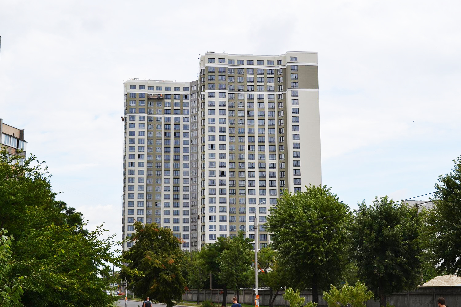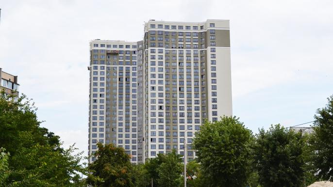 Элегантный фасад жилого комплекса будущие жители могут теперь видеть даже издалека. Согласно плану, в течение этого месяца, строителям осталось выполнить на объекте последние штрихи.