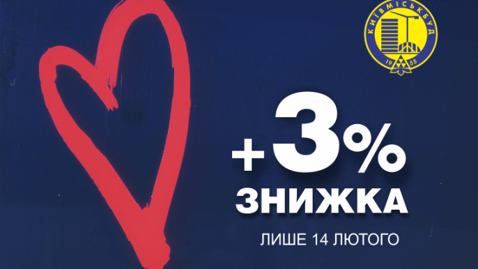 Ко Дню всех влюбленных «Киевгорстрой» дарит дополнительные 3% скидки всем, кто именно 14 февраля купит квартиру.