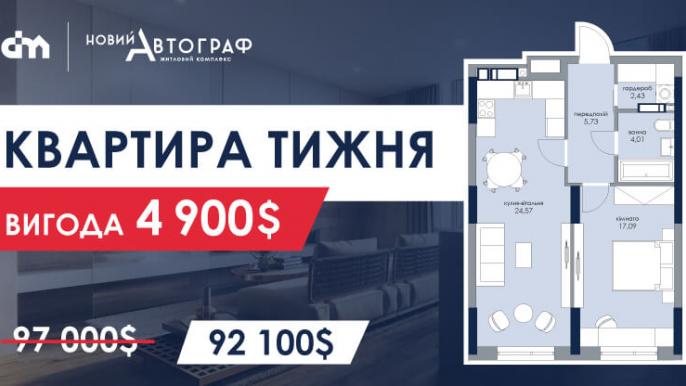 «Квартира тижня» — однокімнатна квартира у ЖК «Новий Автограф» з вигодою до $ 4 900