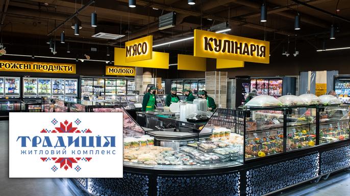 Концепції комплексів від компанії «Інтергал-Буд» передбачають наявність усієї необхідної для комфортного проживання мешканців інфраструктури. З цією метою на території ЖК «Традиція» було побудовано торговий центр, де й відбулось відкриття магазину.