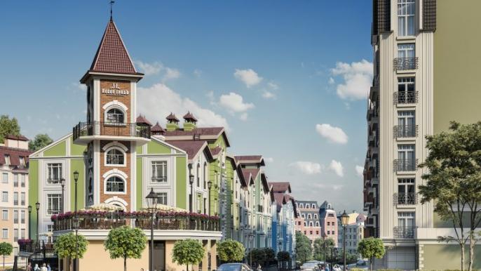 Будівельники облаштовують фасади будинків гранітом, виконують покрівельні роботи та благоустрій території.