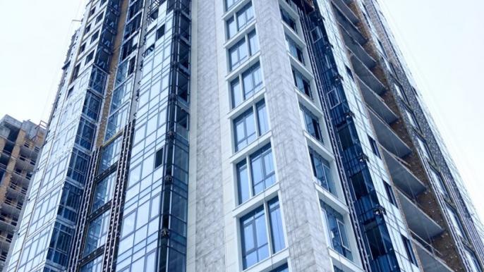 - Будинок №1 - На завершальній стадії влаштування алюмінієвих віконних вітражів, скління та встановлення віконних та дверних конструкцій на рівні 19-20 поверхів. Завершуються роботи з утеплення будинку негорючою мінеральною ватою, кріплення захисної геомембрани, монтаж профілів та влаштування навісного вентильованого фасаду з керамограніту. Триває облаштування інженерних мереж по водозабезпеченню та водовідводу, а також слаботочних систем сигналізації та автоматизації. Продовжуються роботи зі встановлення архітектурного фасадного освітлення.