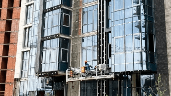Будинок №1 - Продовжується влаштування алюмінієвих віконних вітражів, скління та встановлення віконних та дверних конструкцій з 13 по 20 поверхи. Триває утеплення будинку негорючою мінеральною ватою, кріплення захисної геомембрани та монтаж профілів для кріплення навісного вентильованого фасаду. Ведуться роботи з влаштування навісного вентильованого фасаду з керамограніту. Розпочато встановлення архітектурного фасадного освітлення. Йдуть випробувальні роботи із запуском ліфтового обладнання.