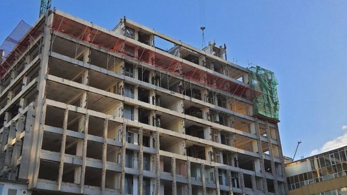 Як повідомили СтройОбзор у компанії SAGA Development на об'єкті KYЇVPROEKT CITY SPACE виконуються планові демонтажні роботи. Наразі роботи тривають на рівні 11-го поверху. Також в жовтні триватимуть роботи з формування шпунтового огородження котловану стилобатної частини будівлі.