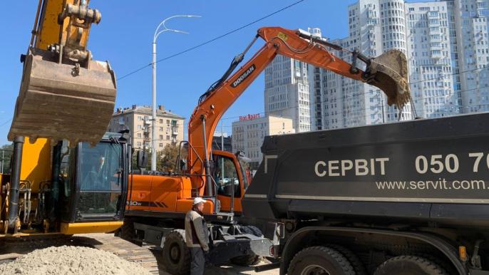 - Розриття котловану на проєктну відмітку зі сторони бульвару Дружби Народів в межах її та 2Ї секції. Влаштування підпірної стіни з сторони бульвару Дружби Народів в межах її та 2Ї секції. Влаштування обмазувальної гідроізоляії підпірної стіни з сторони бульвару Дружби Народів в межах її та 2Ї секції з двох сторін.