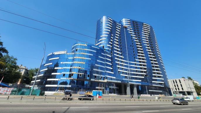 - По секціям №1,2,3,4 завершуються фасадні роботи із монтажу склопакетів, металевих кронштейнів, алюмінієвого каркасу, примикання, алюмінієвих кронштейнів під каркаси, алюмінієвих кронштейнів НПФ, утеплювача НПФ, алюмінієвої НПФ.