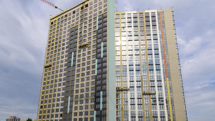 - Будинок 5 - Встановлення дверних блоків виконано на 99%. Влаштування внутрішніх інженерних систем виконано на 99%. Зовнішнє оздоблення фасаду виконано на 99%. Влаштування ліфтів виконано на 99%. Зовнішні інженерні мережі виконано на 97%. Благоустрій території виконано на 95%.