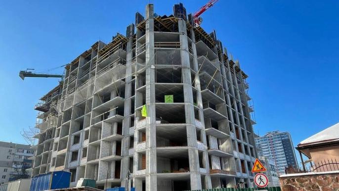 - Секція 1: Влаштування монолітного каркасу – 59%. Влаштування зовнішніх стін та перегородок – 13%. Зворотня засипка цокольної підземної частини – 80%.