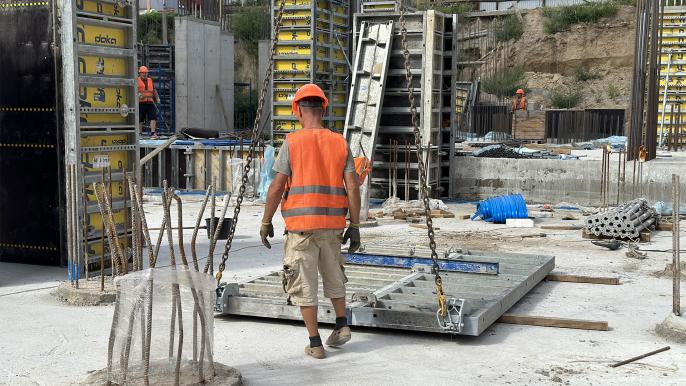 - В першій секції готова фундаментна плита і виконуються вертикальні елементи підвалу. Також звітуємо, що встановлено і запущено баштовий кран.