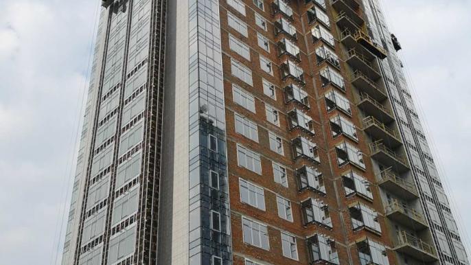 Тривають фасадні роботи: з 3-го по 16-й поверхи – на 90% виконані роботи з монтажу світлопрозорих конструкцій, з 17-го поверху по 23-ий – на 80%. Облаштування навісного вентильованого фасаду з 3-го по 16-ий поверхи – роботи виконані на 60%.