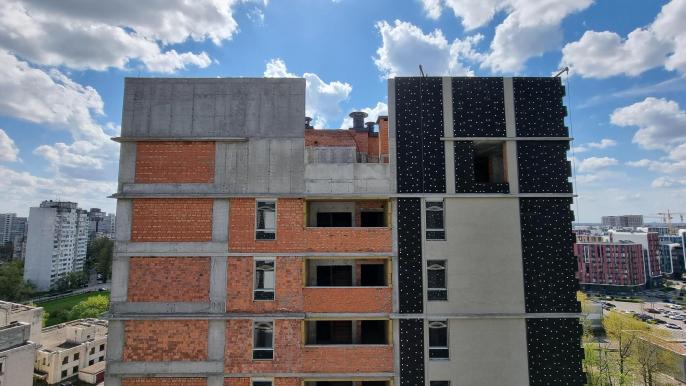 - Секції №2: Виконано монолітні роботи в повному обсязі. Завершено влаштування покрівлі. Виконано влаштування дощової каналізації. Завершено виконання кладочних робіт зовнішніх стін. Завершено виконання кладочних міжквартирних і міжкімнатних стін. Завершено влаштуванню віконних конструкцій. Влаштовано 100 %. Активно виконуються .