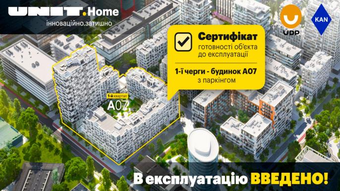 Як повідомили СтройОбзор у компании К.А.Н. Девелопмент перший будинок А07 в інноваційному кварталі ЖК UNIT.Home введений в експлуатацію!