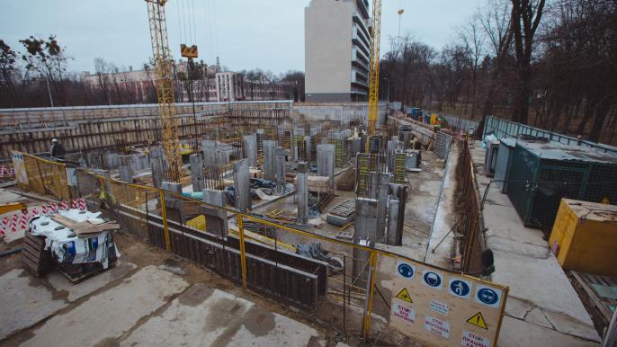 - на 90% выполнено армирование и бетонирование вертикальных конструкций паркинга в секции №1.