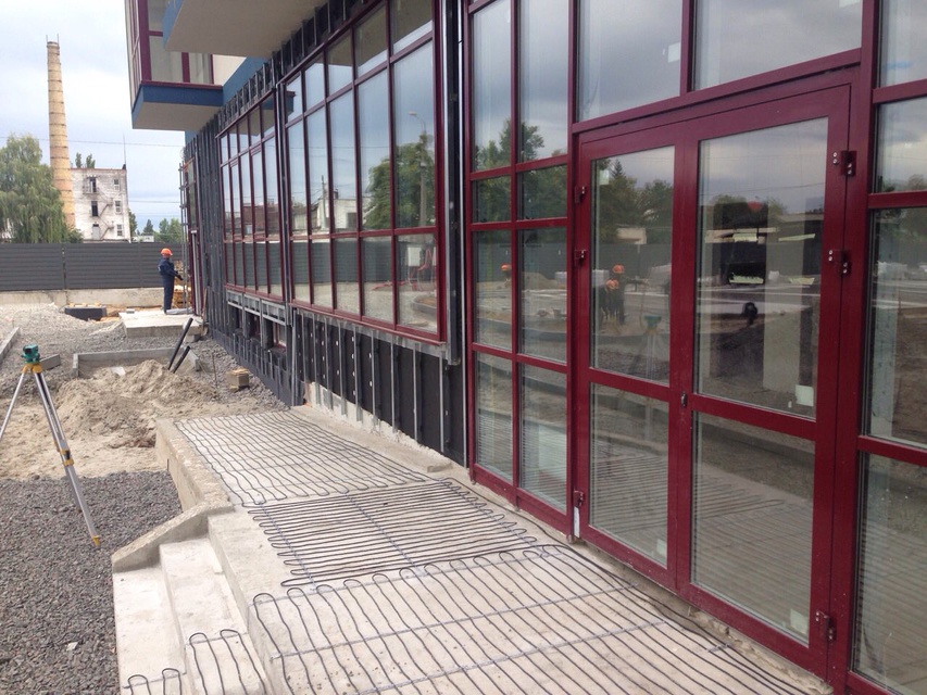 Продолжаются работы по декоративной отделке входной группы. Завершены работы по установке внутренних дверей входной группы. Выполнены работы по монтажу системы антиобледенения ступеней пандуса. Приступили к обустройству вентилируемого фасада цокольного и первого этажей. Продолжаются работы по благоустройству территории и въездов – выездров в комплекс.