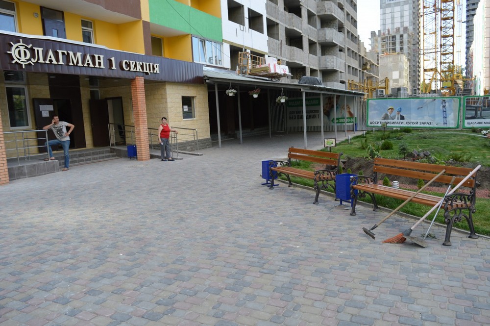 - Установили лавочки с мусорными урнами;