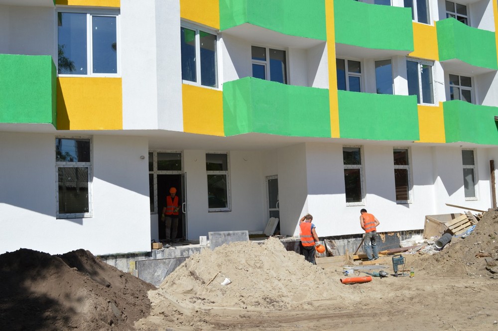 - Продолжаются работы по кладке внутренних перегородок на этажах;