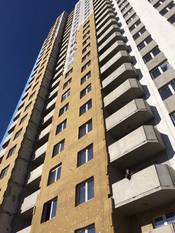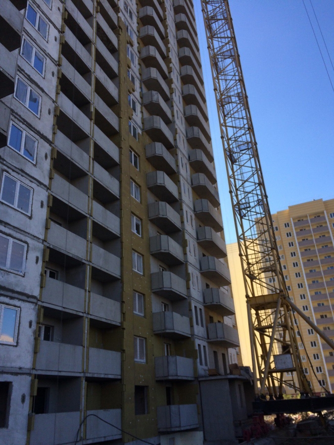 - В четвертом доме динамично продвигаются работы по утеплению фасада. В 1 секции фасад сделан на 40%, а во 2 секции – на 50%.