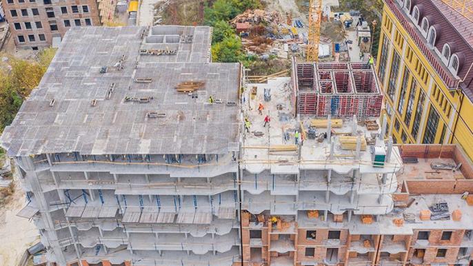Как сообщили СтройОбзору в компании Edelburg Development на объекте ЖК Подол Град Vintage на строительной площадке продолжаются монолитные работы в 1-й и 2-й секциях жилого комплекса.