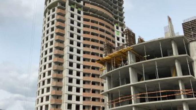Сегодня в доме №1 выполняют монолитные работы на уровне 25 этажа; кирпичную кладку обустраивают на уровне 18-го этажа. В доме №2 выполняют монолитные работы на уровне 6,5 этажа. В доме №3 забетонировали ростверк. Выполняют подготовительные работы для установки башенного крана.